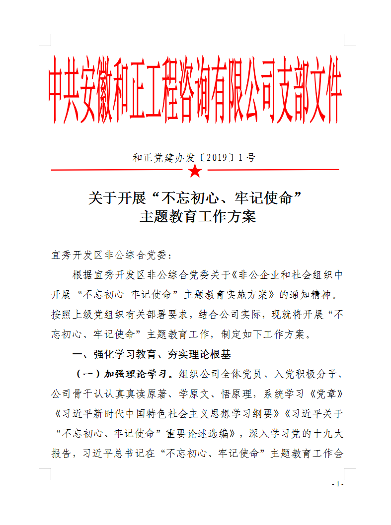 關(guān)于開展“不忘初心、牢記使命”主題教育工作方案