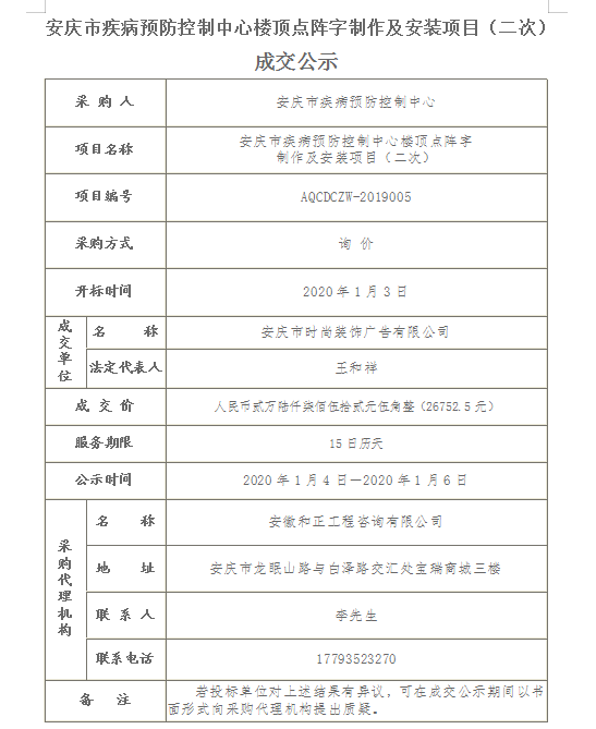 安慶市疾控中心樓頂點陣字制作及安裝項目二次成交公示