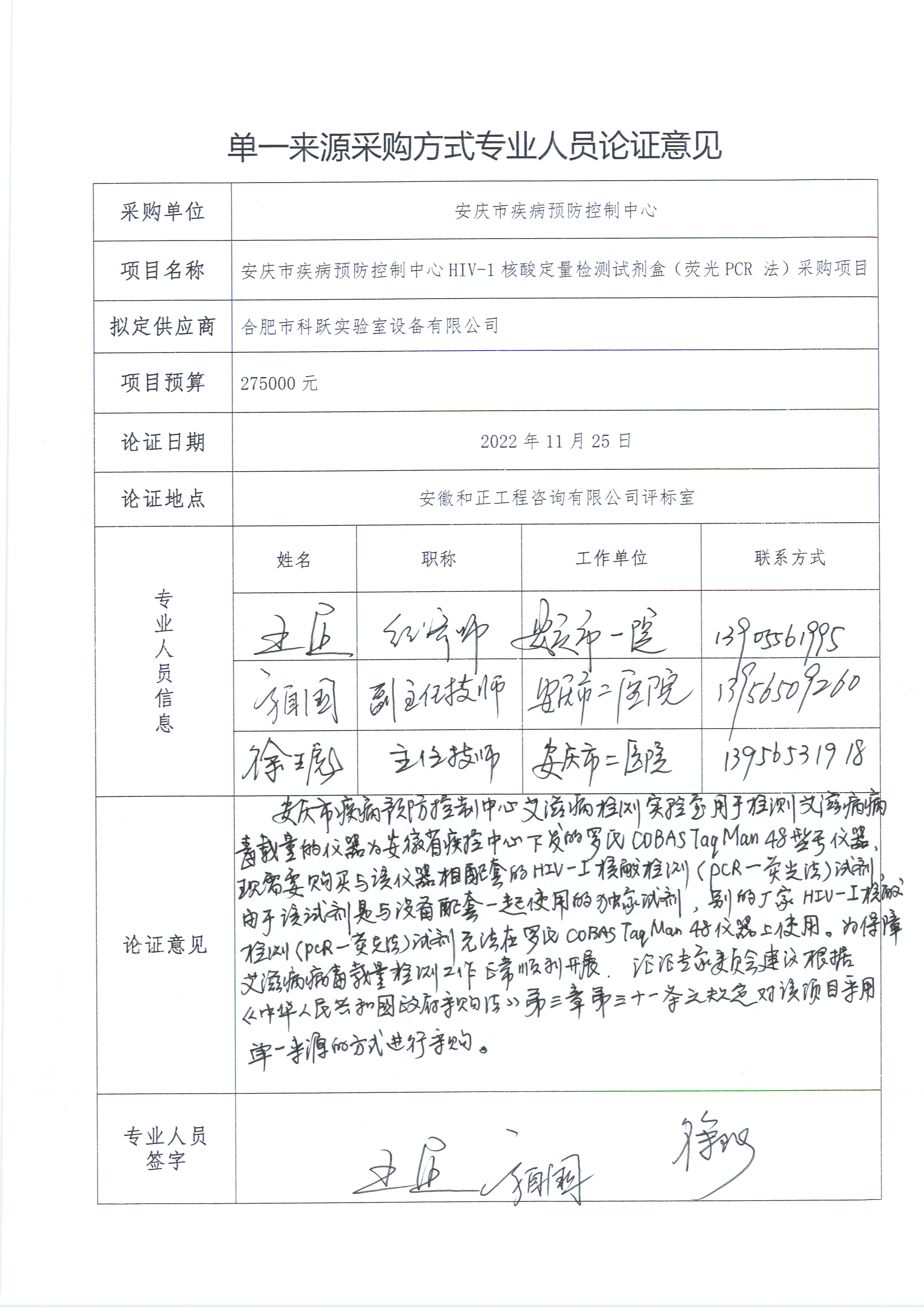 安慶市疾病預防控制中心HIV-1核酸定量檢測試劑盒(熒光PCR 法)采購項目單一來源采購公示