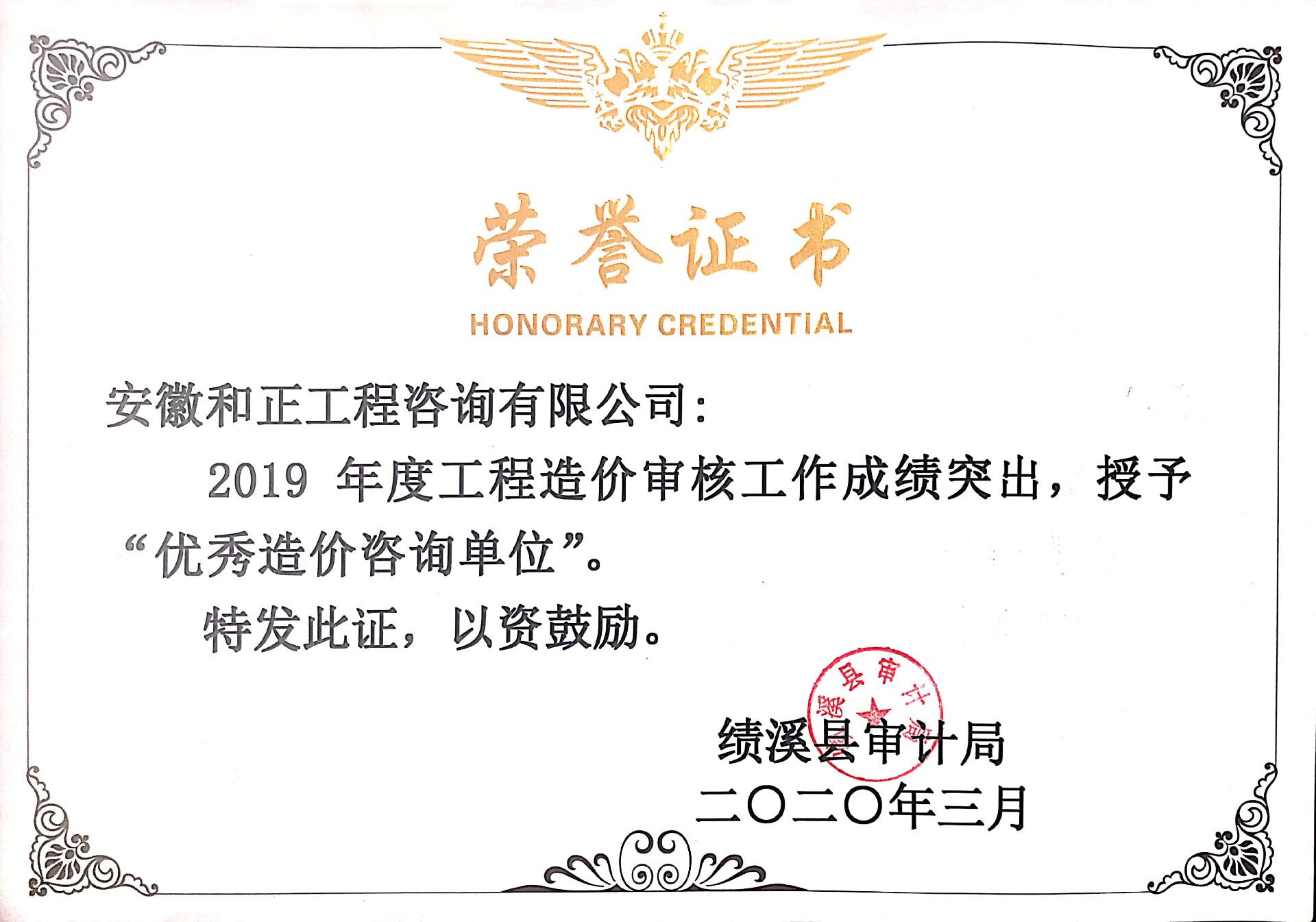 2019年“優(yōu)秀造價(jià)工程單位”
