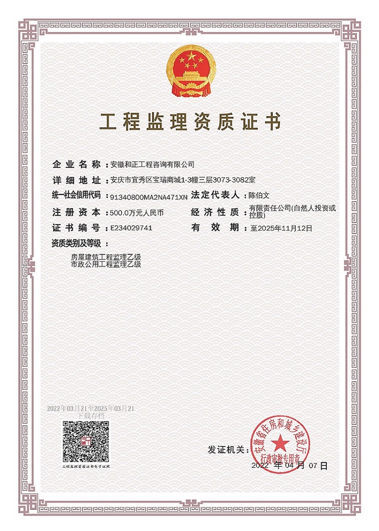 監(jiān)理資質(zhì)乙級(市政、房建)