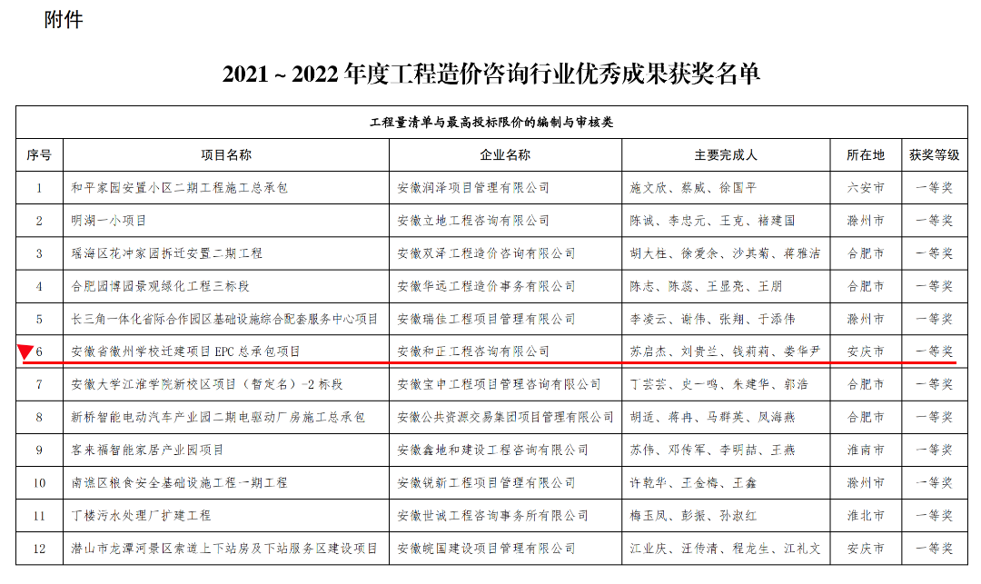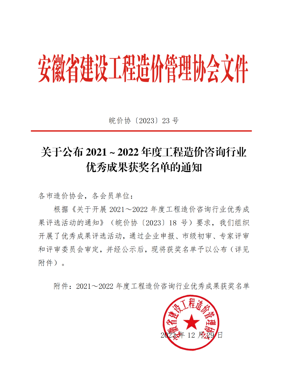 喜報|安徽和正工程咨詢有限公司榮獲2021~2022 年度安徽工程造價咨詢行業(yè)優(yōu)秀成果一等獎