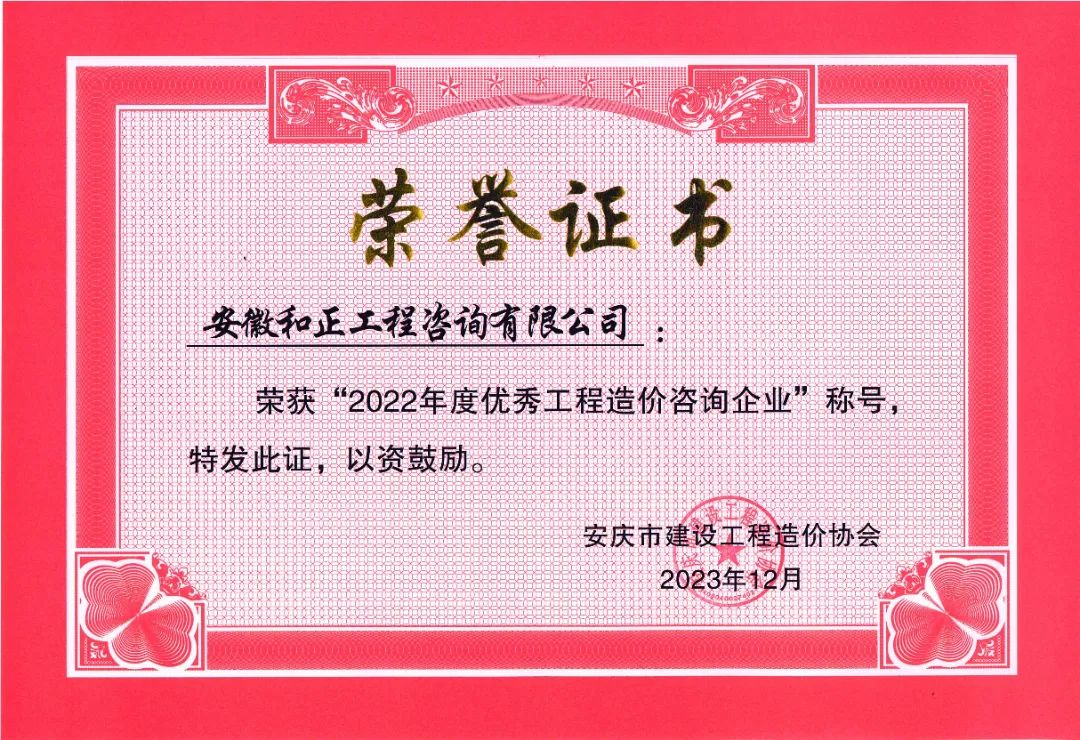 近日,安慶市建設(shè)工程造價(jià)協(xié)會發(fā)布了《關(guān)于公布2022年度安慶市優(yōu)秀工程造價(jià)咨詢企業(yè)及優(yōu)秀造價(jià)人員評選結(jié)果的通知》,公司榮獲“2022年度優(yōu)秀工程造價(jià)咨詢企業(yè)”、“2022年度安慶市優(yōu)秀造價(jià)人員”多項(xiàng)榮譽(yù)。