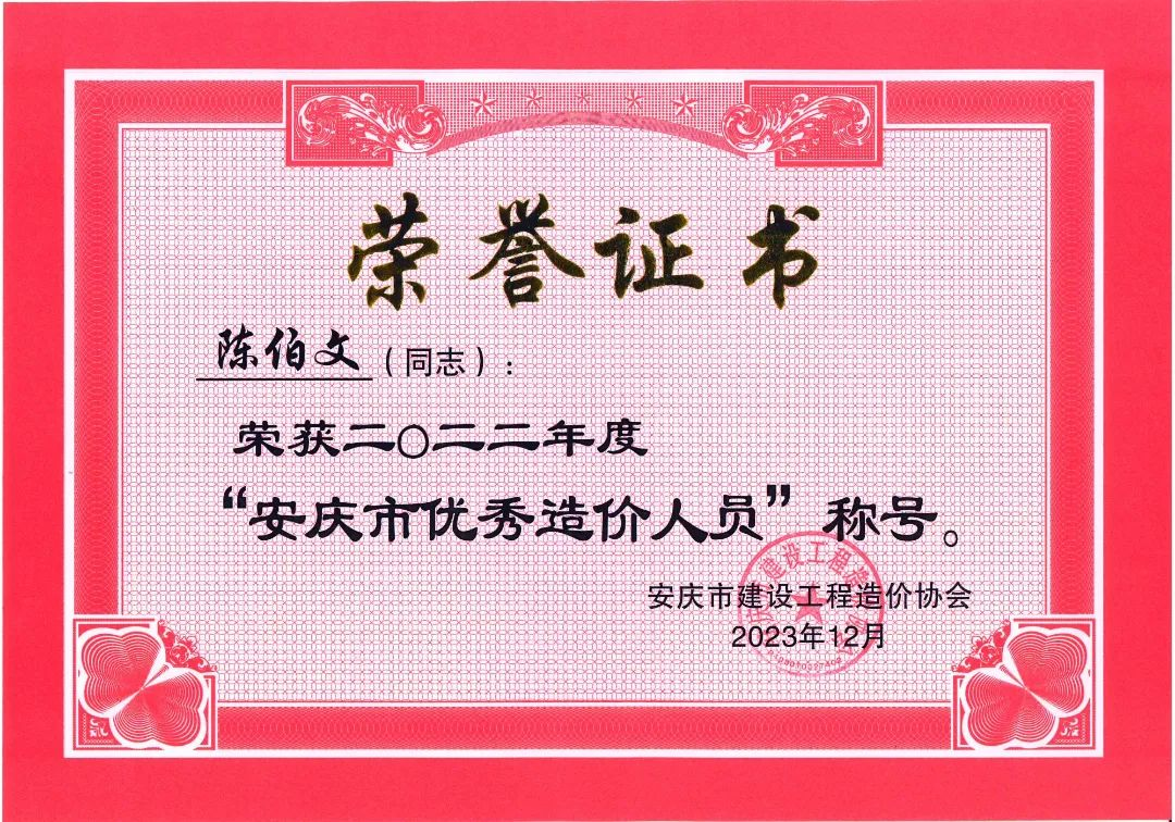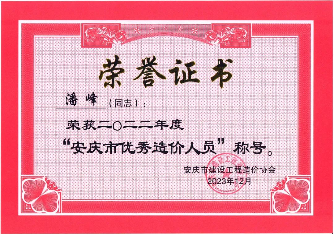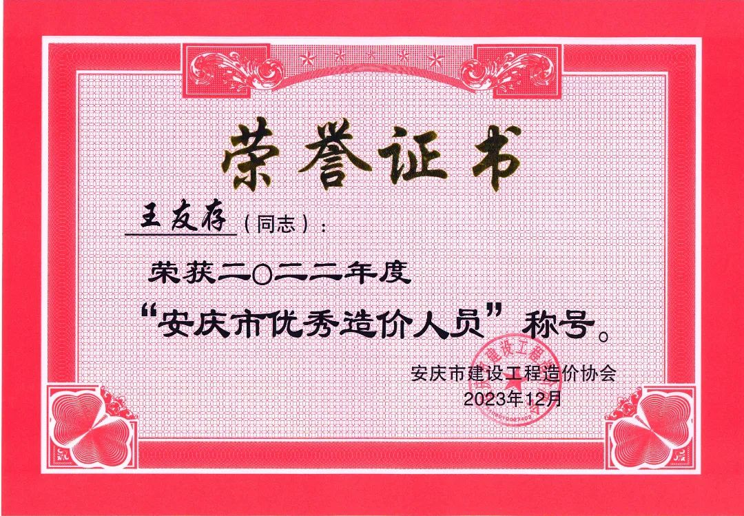 2022年度安慶市優(yōu)秀造價(jià)人員