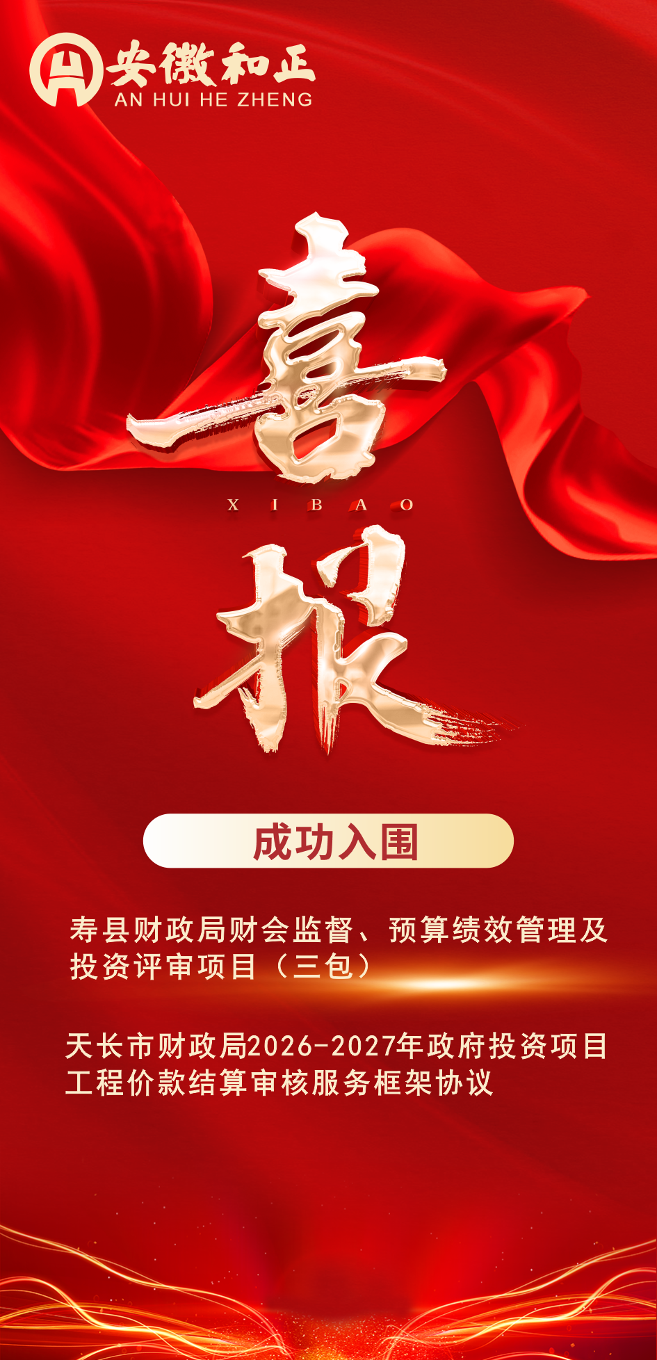 喜訊│雙喜臨門--熱烈祝賀我司成功入圍壽縣財政局和天長市財政局框架協(xié)議!
