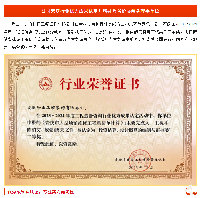 公司榮獲行業(yè)優(yōu)秀成果認(rèn)定并增補為省價協(xié)常務(wù)理事單位